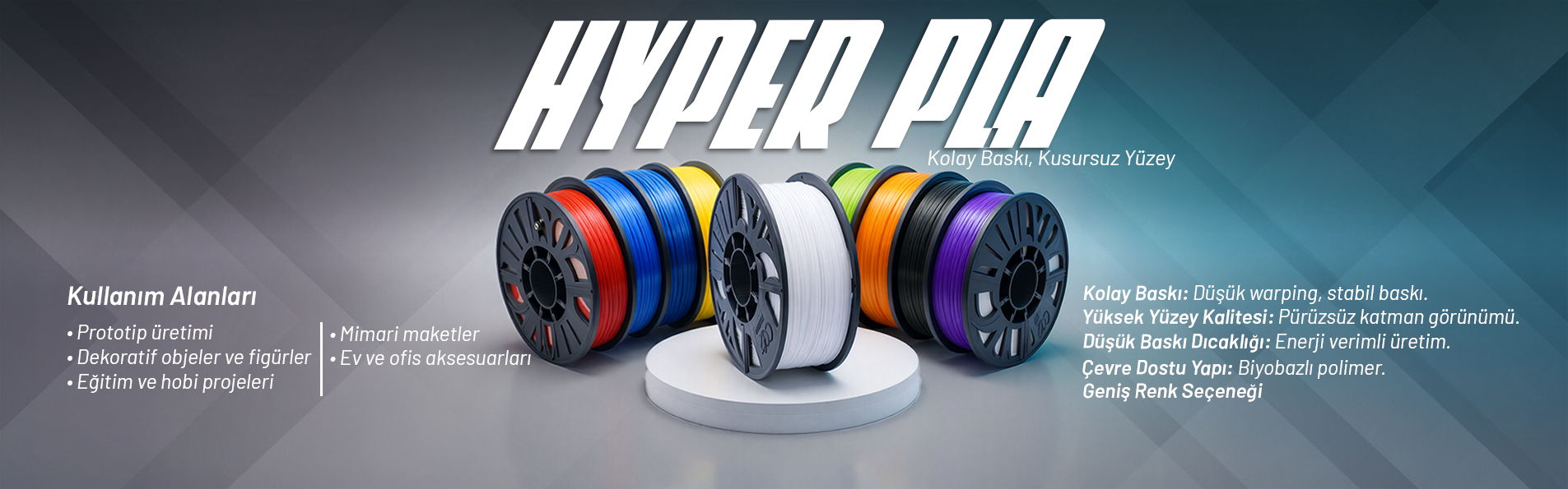 • Hyper Speed PLA Filament: Hızlı ve kaliteli baskılar almak isteyenler için mükemmel bir seçenektir. Zamandan tasarruf ederken, yüksek kaliteli sonuçlar elde edersiniz.